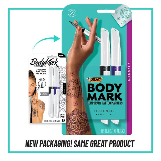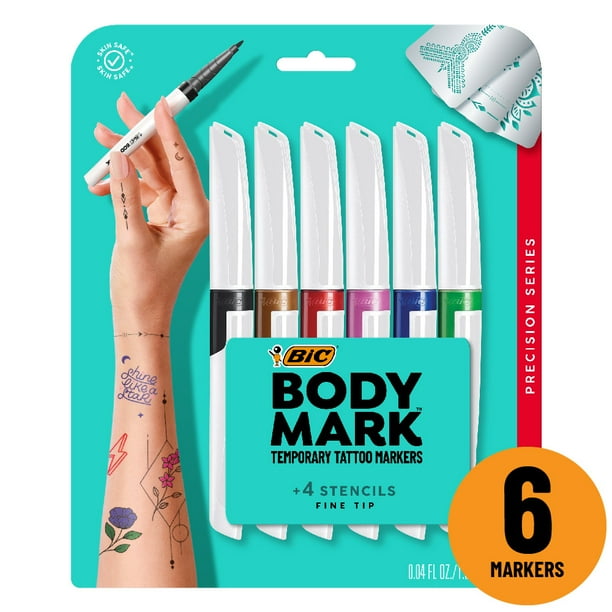 Bic Bodymark Temporary Tattoo Markers Fine Tip Assorted Colors 6 Markers 3 Stencils Gift Set Walmart Com