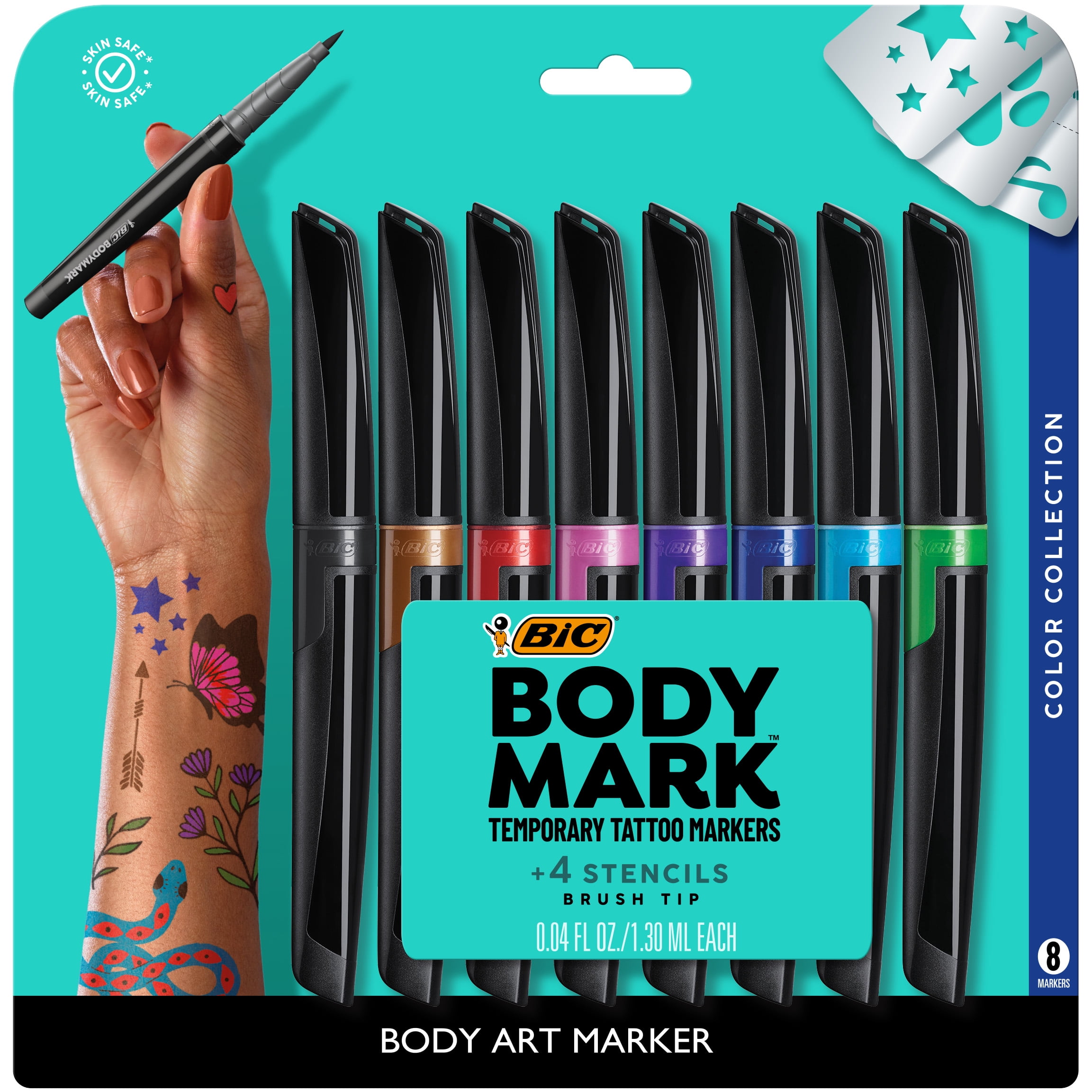 Bic Bodymark Temporary Tattoo Marker With Fine Tip Precision Series Assorted Colors Pack Of 8 Markers 3 Stencils Walmart Com