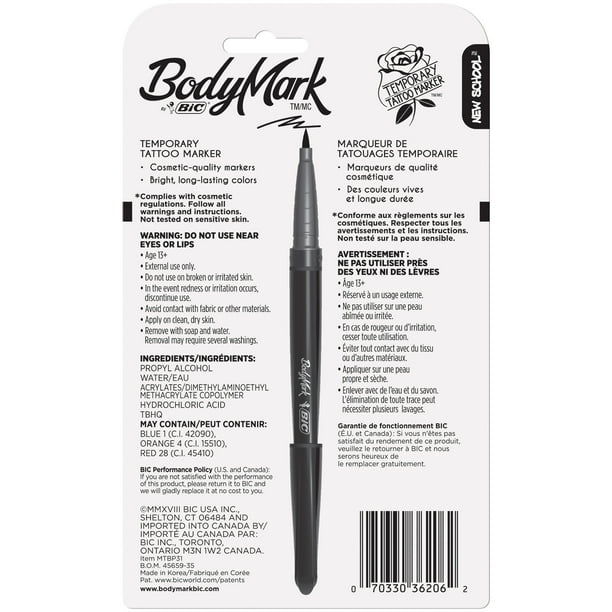 Bic Bodymark Temporary Tattoo Marker New School Assorted Colors 3 Pack Walmart Com